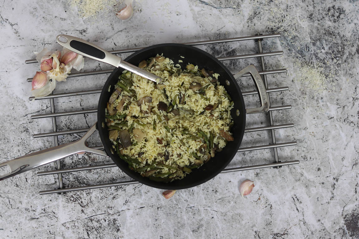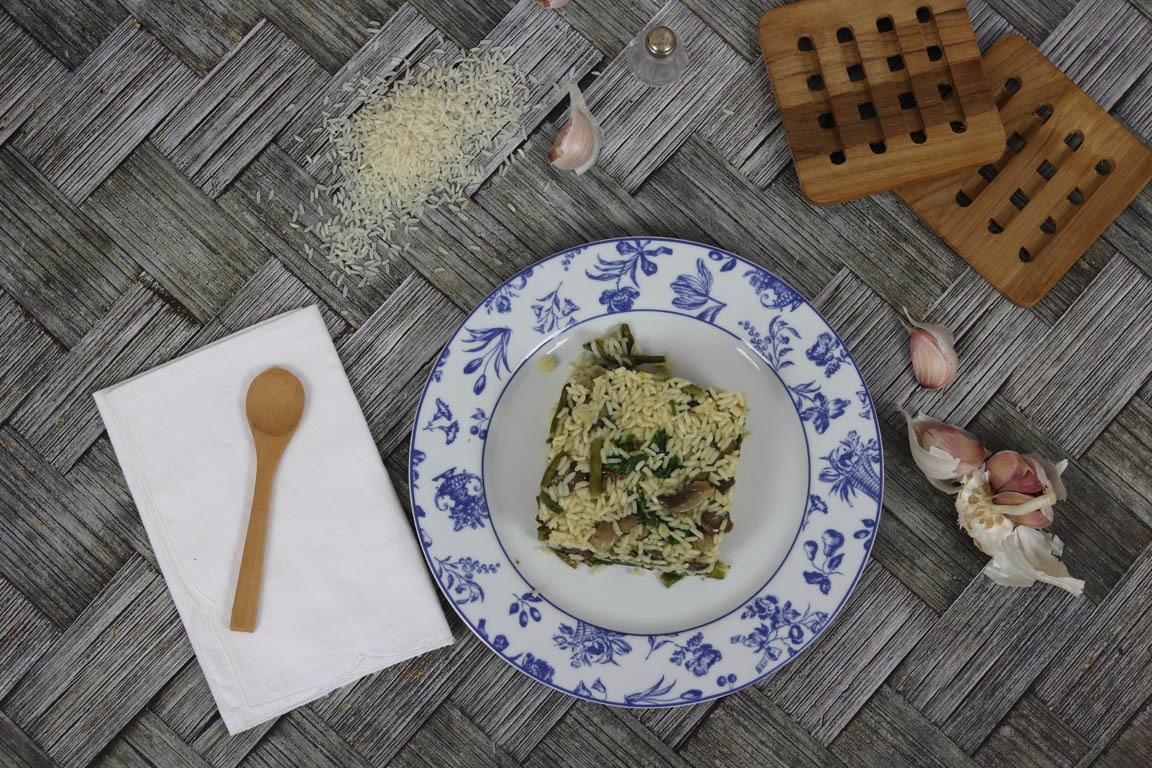 ARROZ CON CHAMPIÑONES Y ESPÁRRAGOS VERDES