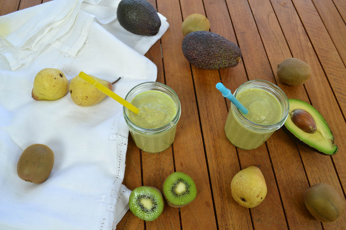 Receta de smoothie muy rico con pera, kiwi y aguacate. Es fácil de hacer y gusta mucho a los niños por su sabor dulce. Contiene pocos azúcares, grasas saludables y mucha fibra.