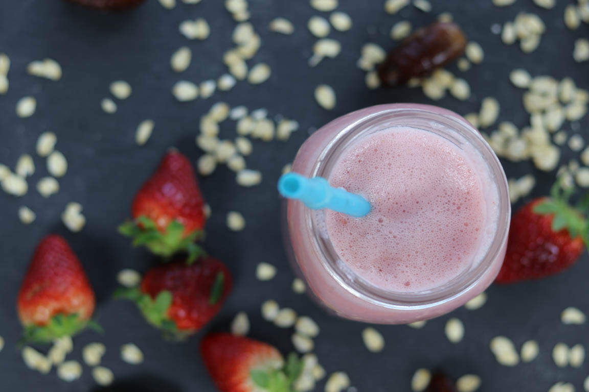 Receta de batido con yogur fresa y avena para preparar un desayuno saludable y con un alto contenido en vitamina C y fibra.
