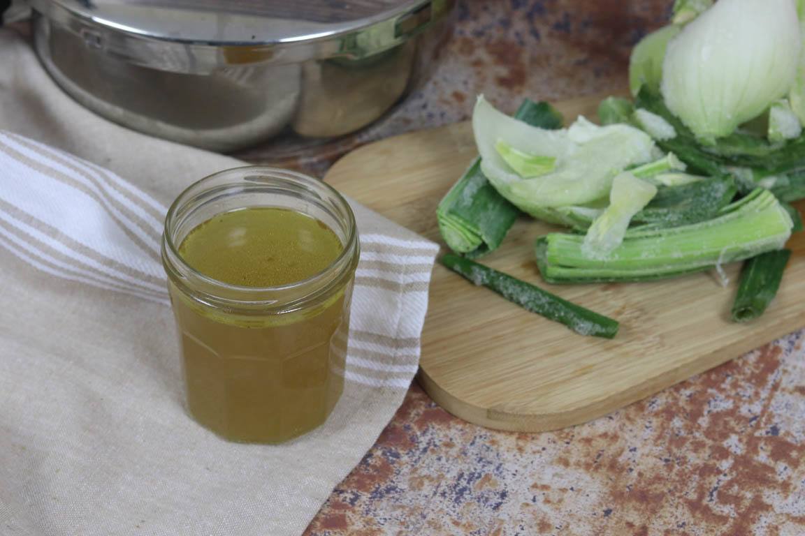 Para preparar el caldo de verduras más rápido puedes utilizar la olla rápida y no es necesario descongelar las verduras con anterioridad sino que las puedes añadir directamente a la olla.