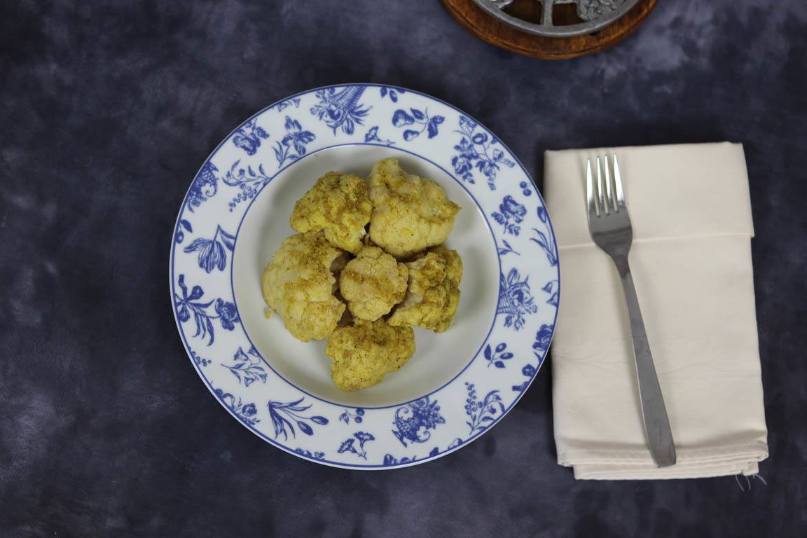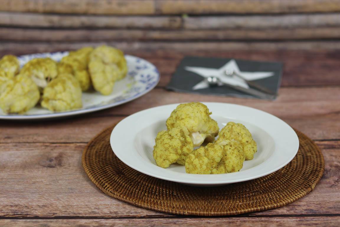 La combinación de especias de esta receta es muy básica, ajo, cebolla, pimienta y cúrcuma. Son especias fácilmente asequibles y que dan un sabor delicioso a la coliflor asada al horno.