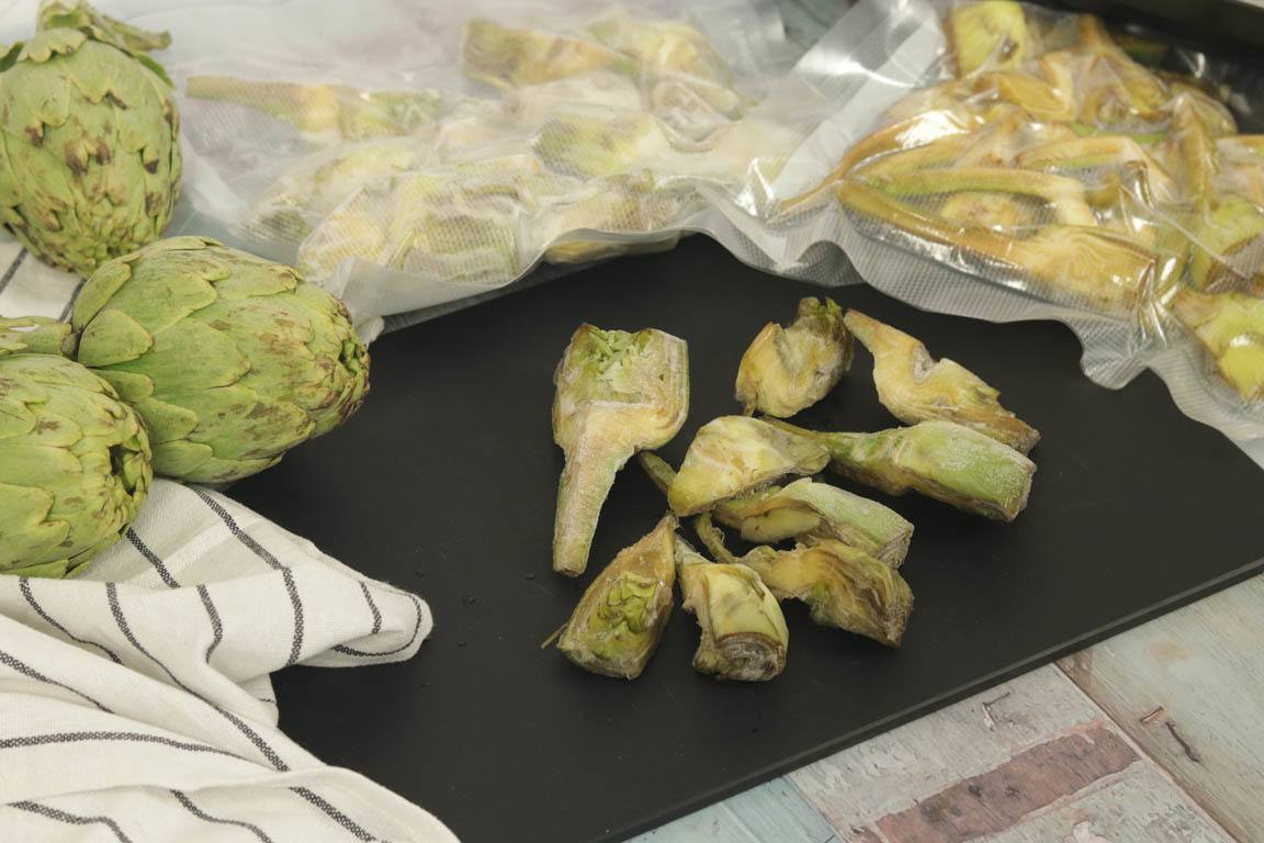 Congelación al vacío de las alcachofas.