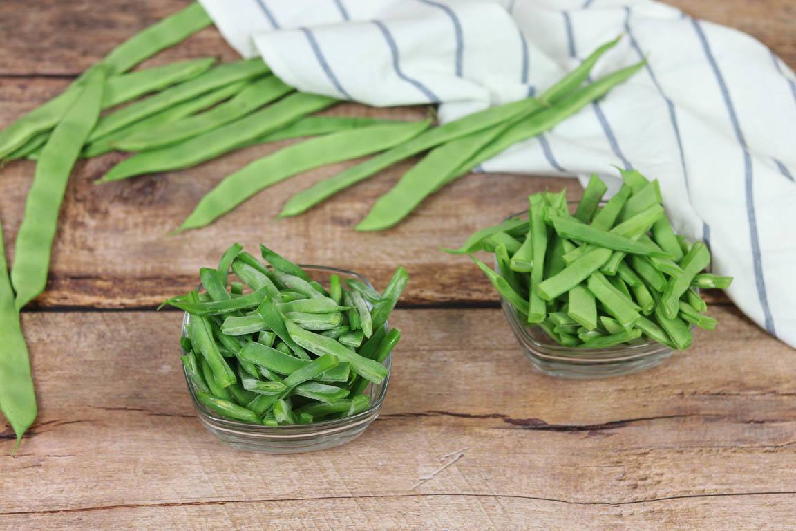 Para congelarlas primero debemos lavarlas y secarlas. Una vez secas se les quita la punta por la que han estado unidas a la planta. Si las vainas son grandes y gruesas es mejor partirlas a lo largo por la mitad para que la congelación sea más rápida y se mantenga mejor la textura.