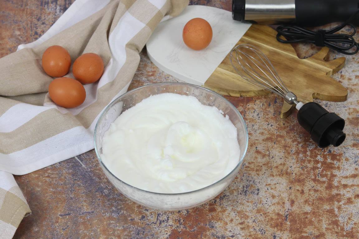 Es importante que a la hora de batir se utilice una batidora eléctrica con varillas. Primero se comienza batiendo a baja temperatura y según se vaya formando la espuma se irá subiendo la velocidad.