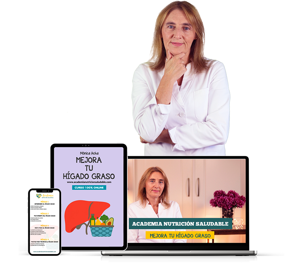 Todo el curso Mejora tu Hígado Graso está totalmente diseñado e impartido por Mónica Acha, Dietista-Nutricionista, Tecnóloga de los Alimentos y experta en Nutrigenómica y Nutrigenética con más de 30 años de experiencia profesional ayudando a miles de personas a cambiar sus hábitos alimentarios para poder eliminar el hígado graso de sus vidas.