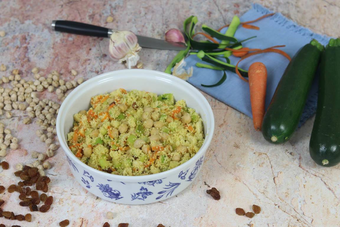 El cous cous es un ingrediente que se utiliza mucho en la cocina marroquí y en general en todo el norte de Africa. Es un ingrediente que habitualmente se preparar acompañado de abundantes verduras y bastante especiado. Podemos además aprovechar y añadir un poco de legumbre, en este caso garbanzos para aportar proteína al plato.