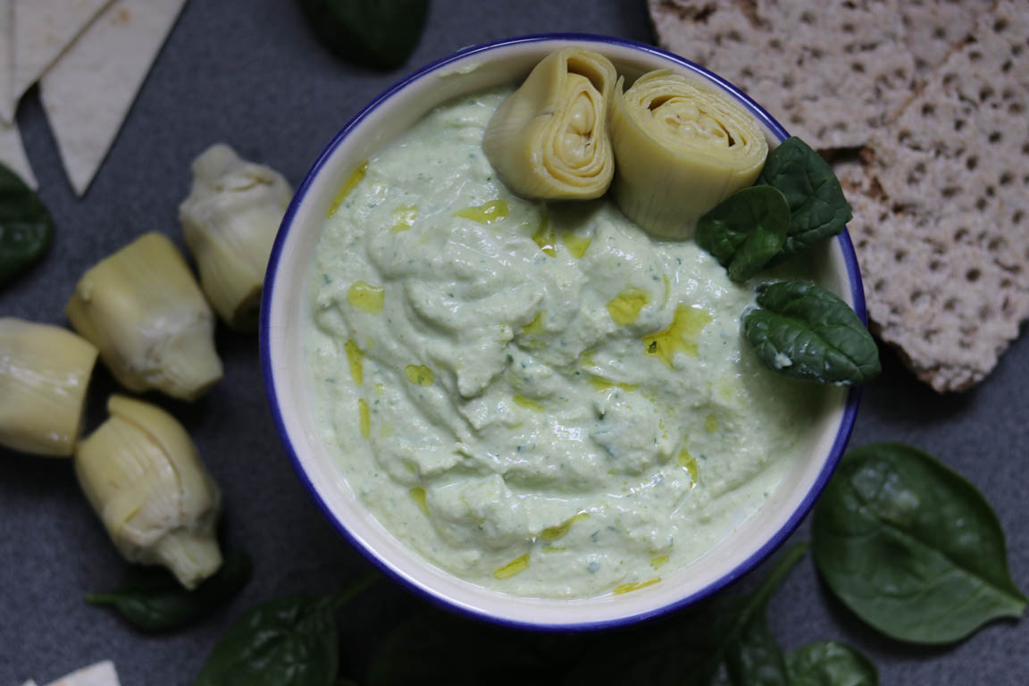 Receta de dip frío de espinacas y alcachofas saludable y muy fácil de hacer. De esta manera podemos aprovechar las propiedades diuréticas de las alcachofas.