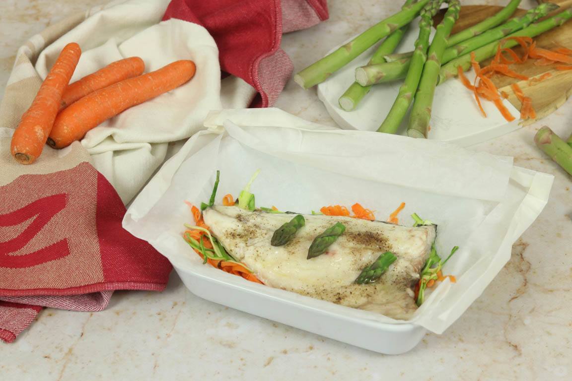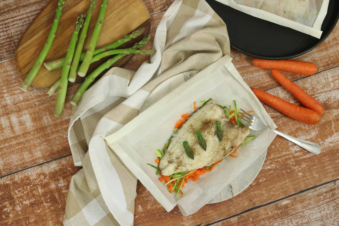 DORADA EN PAPILLOTE CON ESPÁRRAGOS VERDES