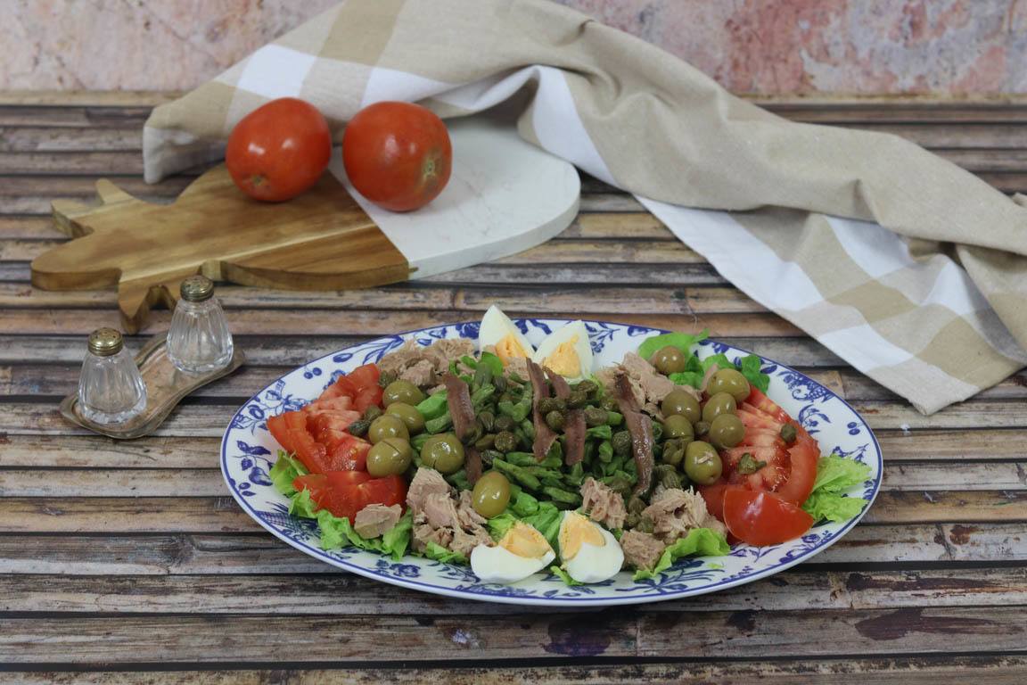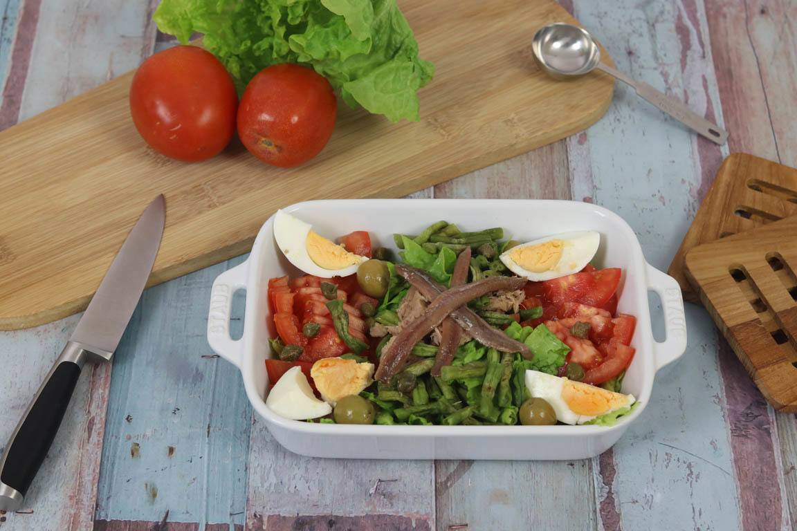 La ensalada niçoise o ensalada nizarda tiene su origen en el sureste francés, en concreto en Niza. La ensalada nizarda tiene como ingrediente característico las vainas o judías verdes redondas, que son las que se consumen en Francia. Dependiendo de diferentes partes del mundo es posible que se encuentren judías planas o redondas. La ensalada nizarda la puedes preparar con cualquiera de las diferentes variedades de judía verde.