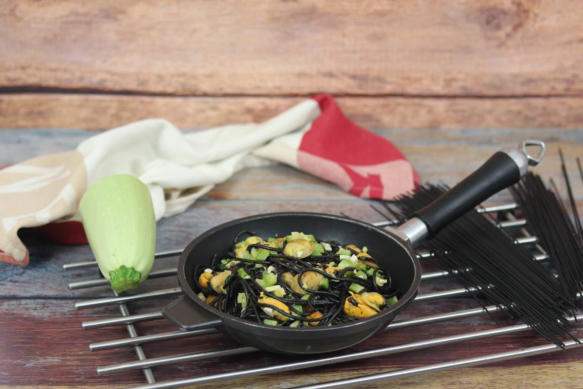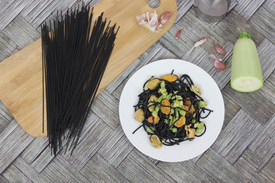 ESPAGUETIS NEGROS CON CALABACÍN Y MEJILLONES