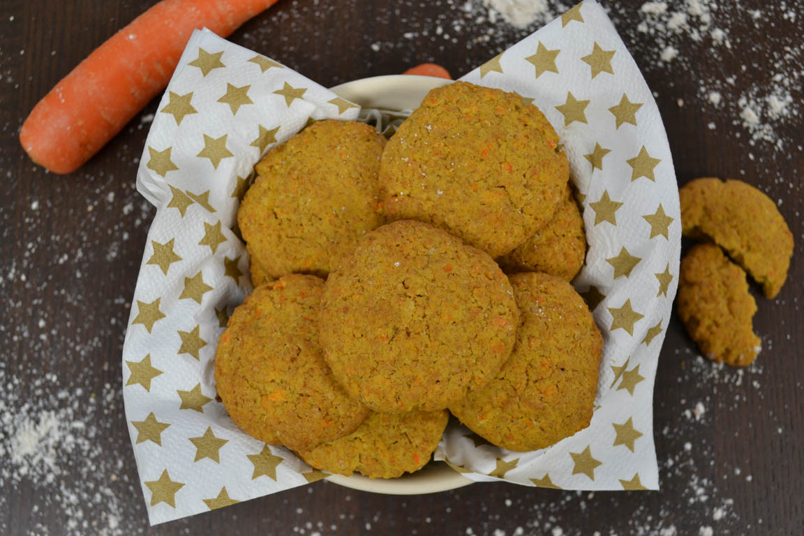 Receta paso a paso para preparar galletas de zanahoria en casa. Es una receta para preparar galletas sin huevo y sin lácteos.