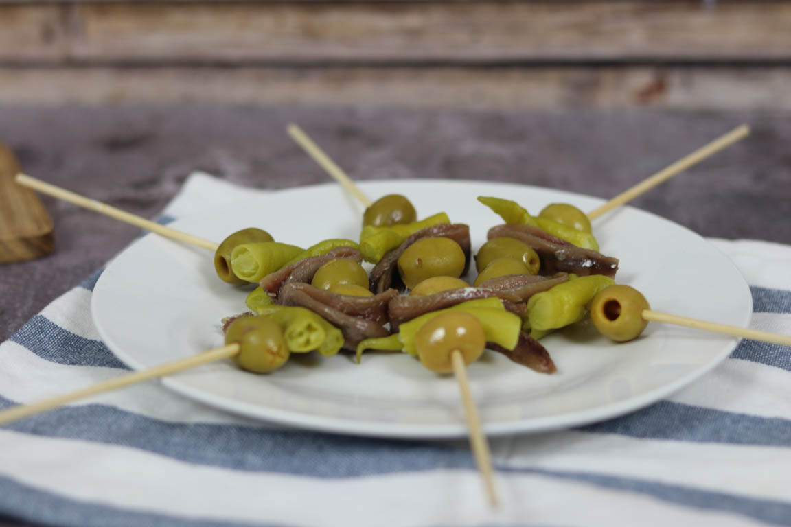 Os digo que es una receta de fondo de despensa porque los ingredientes con los que se prepara los podemos tener en la despensa o en el frigorífico durante mucho tiempo y así poder preparar las gildas en cualquier momento.