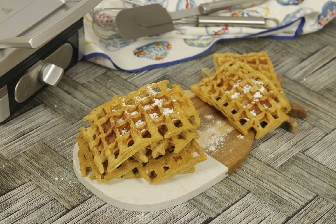 Los gofres son una receta por lo general dulce aunque esta versión de gofres de calabaza no lleva azúcares añadidos y sirve para tomarla tanto con algo dulce como salado. Las recetas que se utilizan para preparar los gofres son muy parecidas a las recetas de las tortitas, la principal diferencia es que se preparan en una gofrera que les da esa forma tan característica.