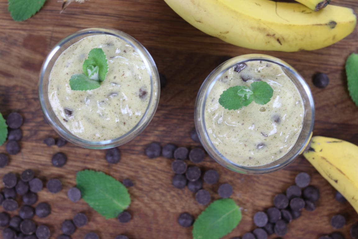 También podríamos añadirle unas gotas de esencia de menta en el caso de querer un sabor más intenso. Y el complemento perfecto del helado son las pepitas de chocolate negro.