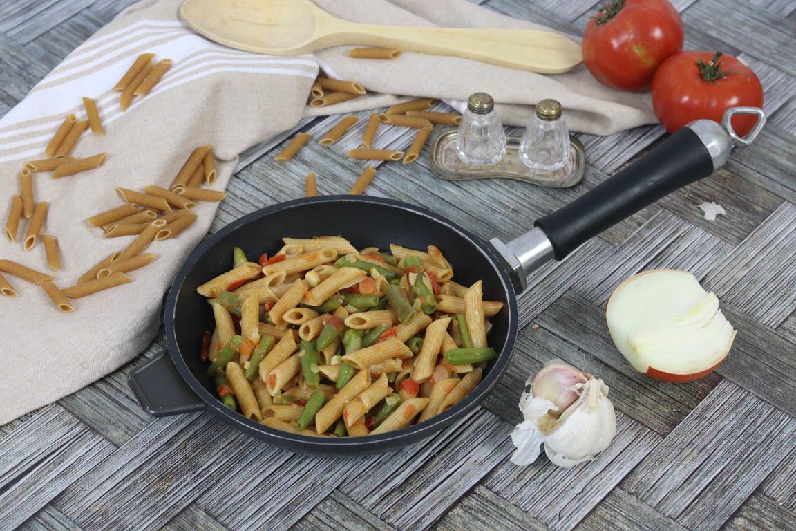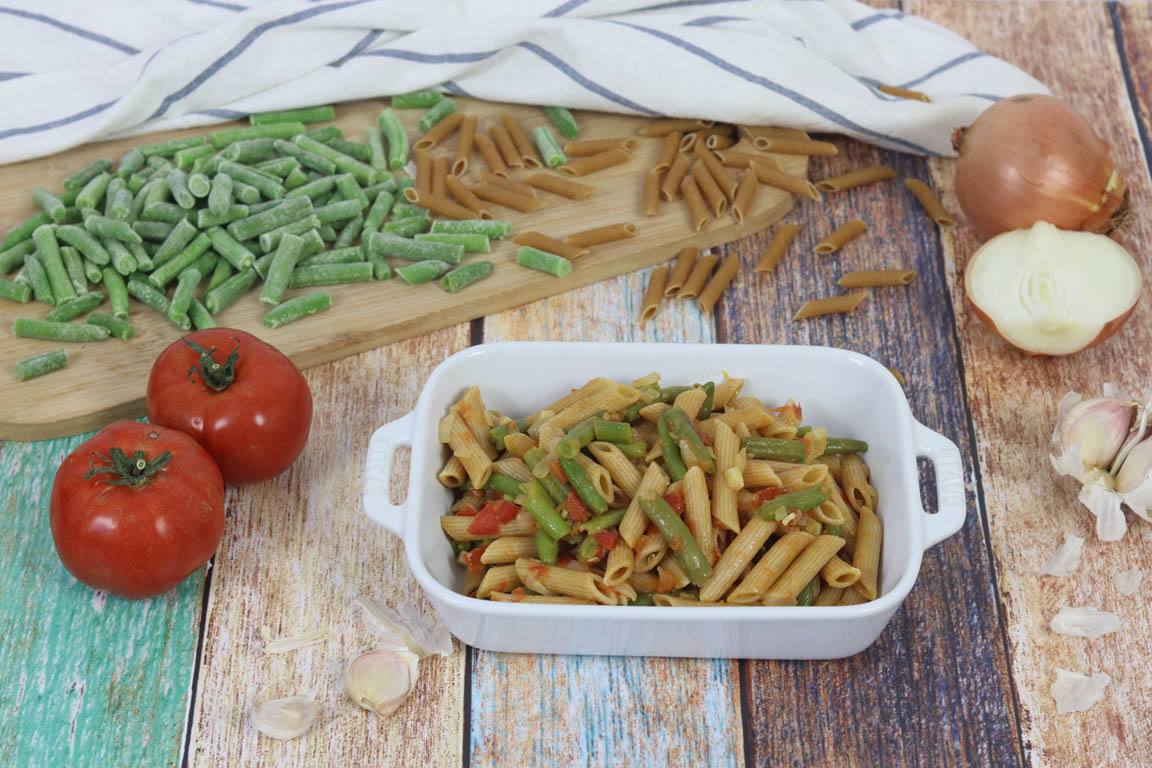 MACARRONES INTEGRALES CON JUDÍAS VERDES