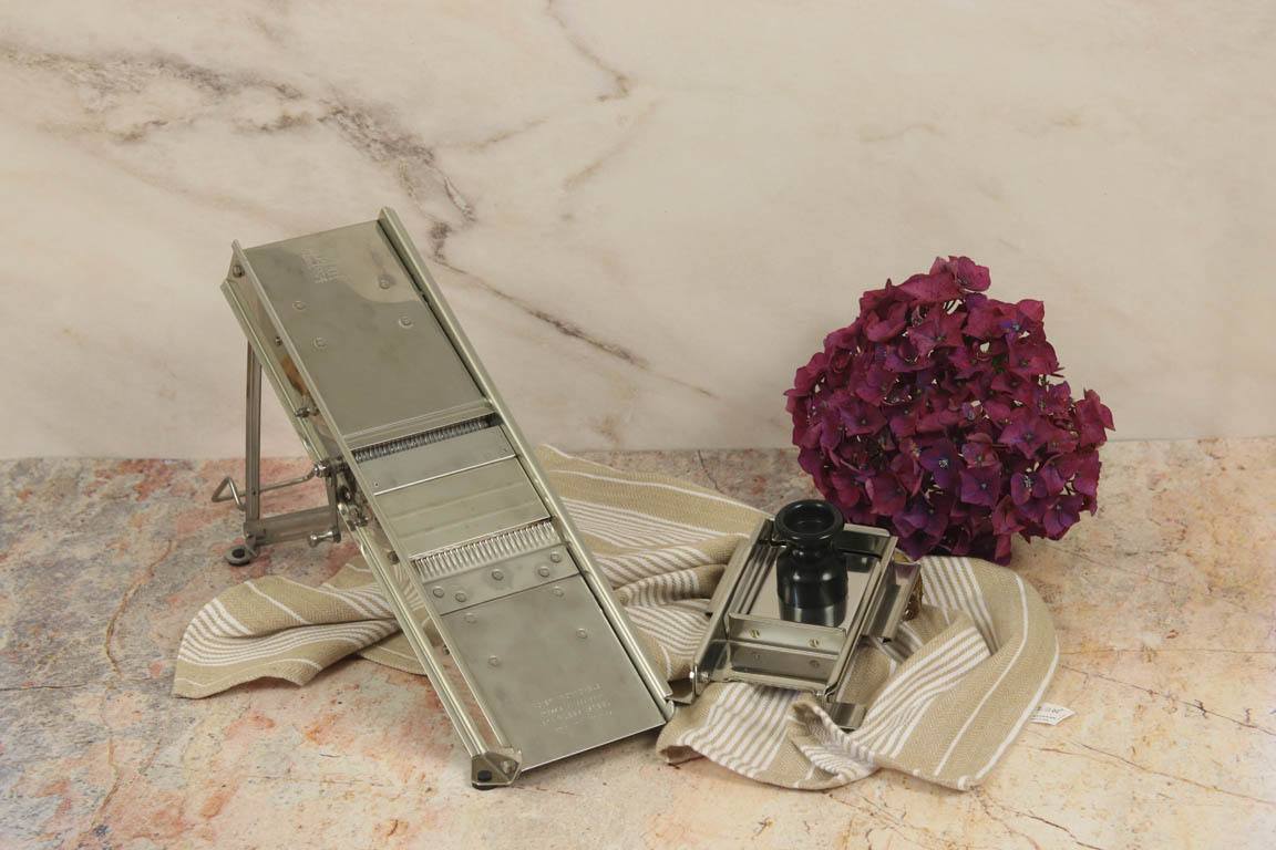 La mandolina Bron Couke es probablemente una de las mejores mandolinas que se encuentran en el mercado. Es una mandolina que permite controlar perfectamente el grosor del corte y además puedes jugar con la posición de las diferentes cuchillas para preparar diferentes tipos de corte. Esto muchas veces permite dar un toque diferente a las recetas que preparamos simplemente cambiando la forma de cortar las verduras.