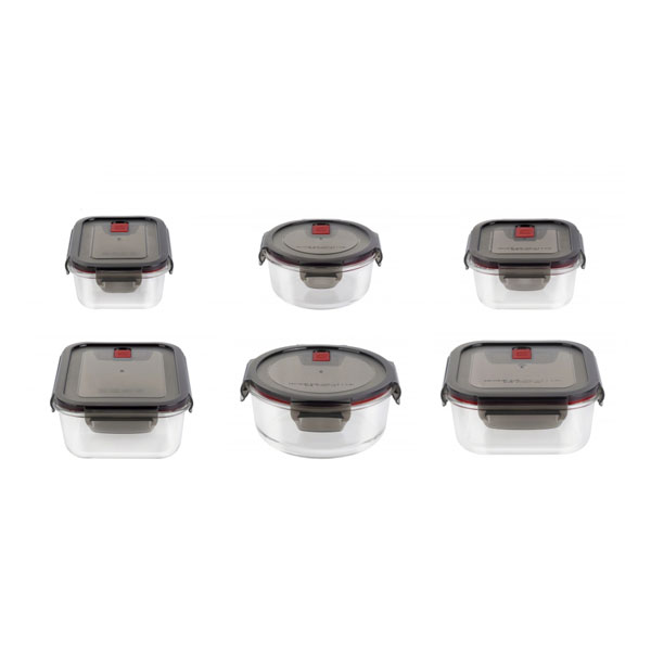Los recipientes de cristal tienen como ventaja ser totalmente inertes en contacto con los alimentos y además son aptos para calentar en el microondas, incluidas las tapas de vacío, que también se pueden utilizar en el microondas. Se pueden guardar uno dentro de otro y ocupan poco espacio.