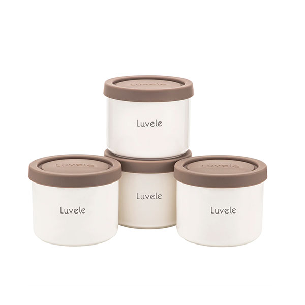 Tengo 4 tarros extras para mi yogurtera Luvele Pure que me permiten preparar nuevos yogures mientras todavía tengo otros en la nevera. Los tarros de la yogurtera Luvele Pure son de cerámica y tienen una capacidad de 400 ml con tapa de plástico sin BPA y donde puedo poner además la fecha de preparación.