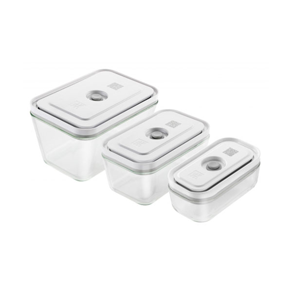 Set de 4 recipientes de diferentes capacidades a los cuales puedes hacer el vacío. Los recipientes están fabricados en vidrio con tapas de metal. Los recipientes de vidrio son aptos para el congelador, el lavavajillas, el horno o el microondas por lo que puedes conservar, calentar e incluso cocinar.