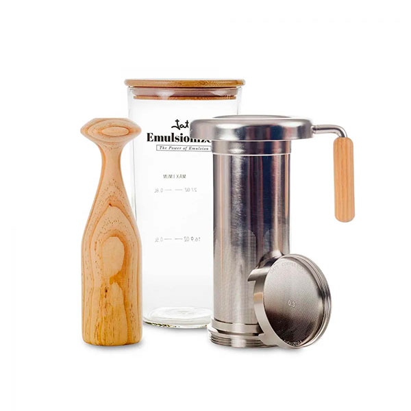 El filtro Emulsionizer de Vegan Milker ofrece una mejor emulsión y filtrado de la pulpa gracias a sus bases intercambiables con perforaciones de diferentes tamaños y a su filtro fabricado íntegramente en acero mucho más resistente. Tiene la base desenroscable para una mejor limpieza al utilizarla.