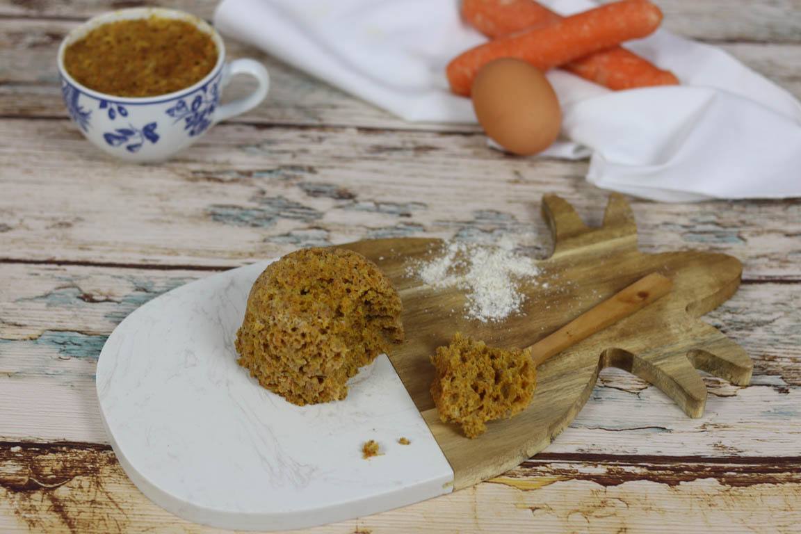 El mug cake de zanahoria sería la versión individual de la famosa tarta de zanahoria pero en versión saludable y con menos cantidad de azúcar añadido. Aprovecha las recetas de mugcake para controlar la ración ya que se prepara en ración para una persona.