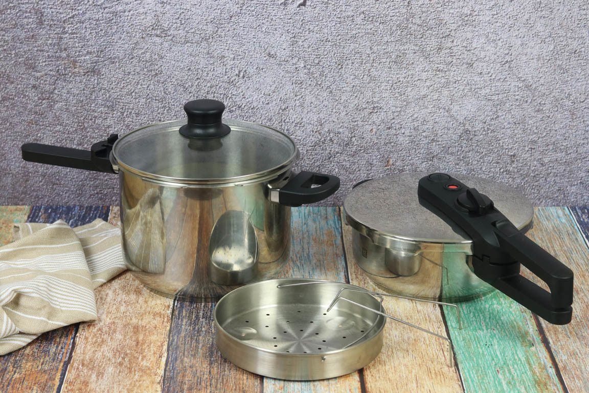 A la hora de comprar una olla rápida te recomiendo que sea lo más completa que puedas. Para mi es importante que tenga cestillo para poder cocinar al vapor y si tiene dos cuerpos, uno grande y otro pequeño todavía mejor porque te dará mucho más juego para cocinar recetas diferentes.