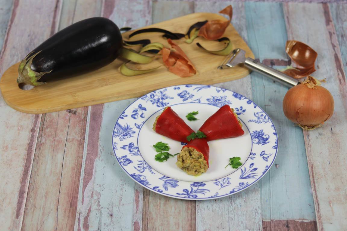 PIMIENTOS RELLENOS CON BERENJENA Y CARNE