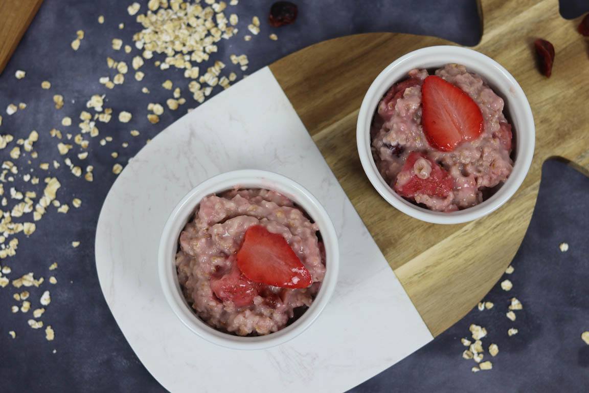 Receta de porridge de avena que combina el sabor dulce y suave de la avena con el sabor refrescante de las fresas.