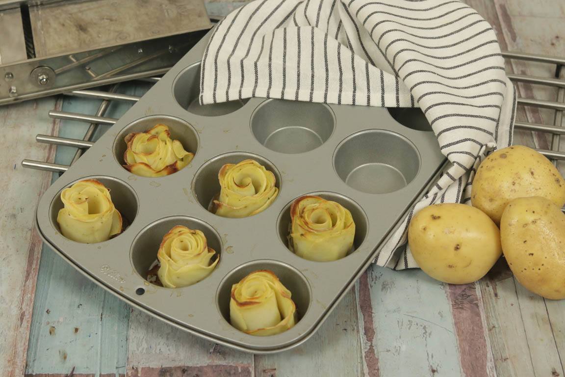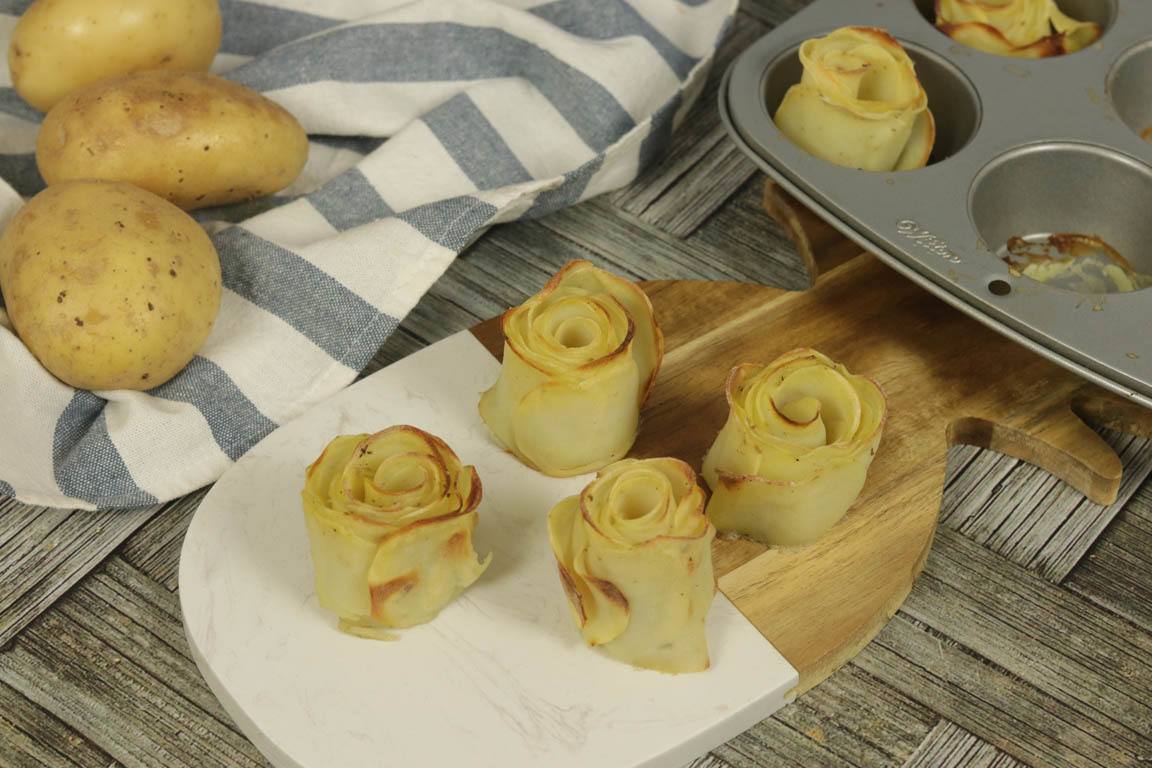 Las rosas de patata horneadas son una forma saludable de preparar las patatas.