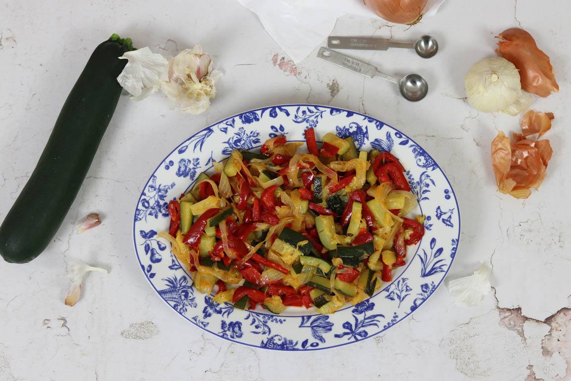 SALTEADO DE CALABACÍN, PIMIENTO Y CEBOLLA