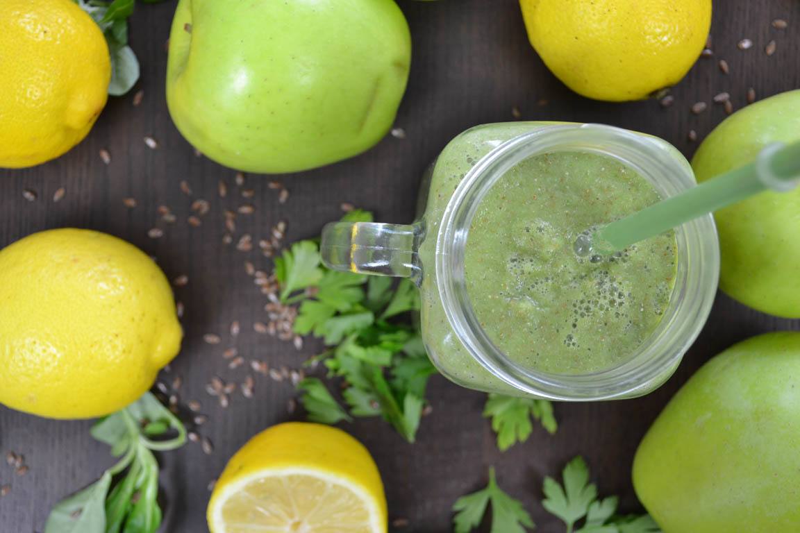 Receta de smoothie verde con un alto contenido en fibra que va a servir para limpieza y arrastre de sustancias de desecho a través del sistema digestivo, y en especial en el intestino grueso.