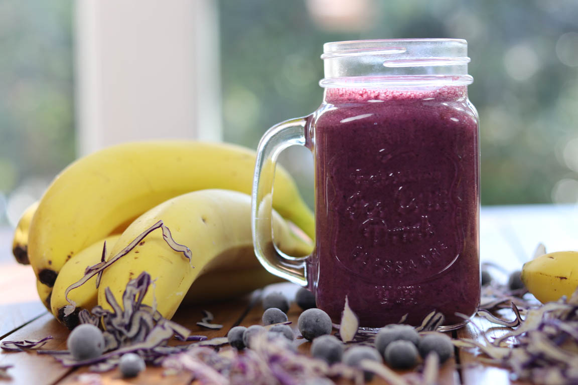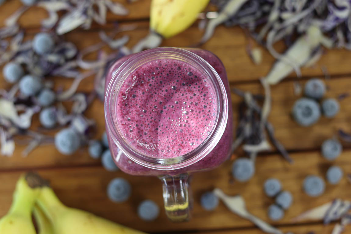 Receta de smoothie verde con lombarda que es una verdura de la familia de las crucíferas con un alto contenido en fibra y en antioxidantes.