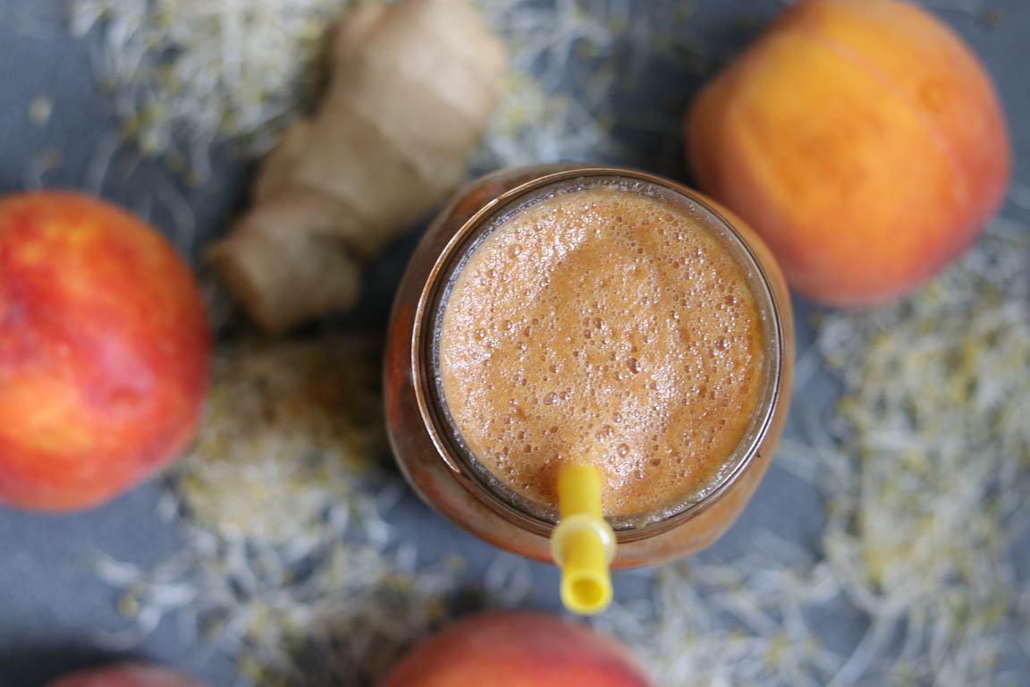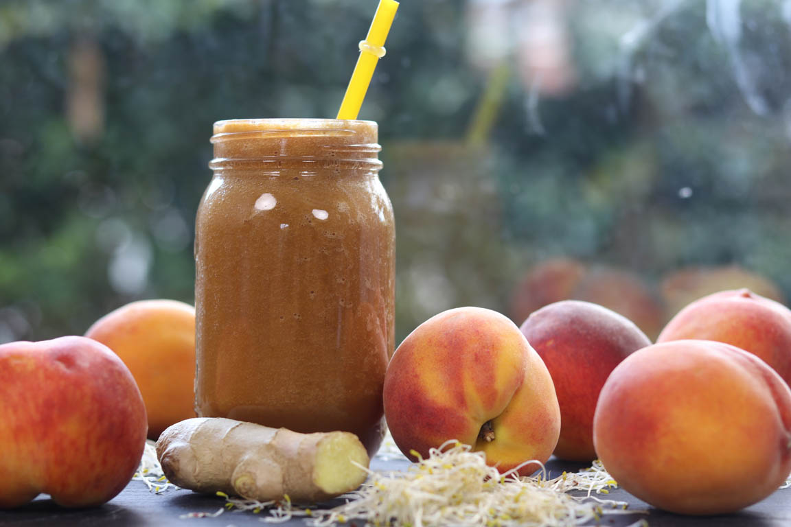 SMOOTHIE VERDE DE MELOCOTÓN CON GERMINADO DE ALFALFA