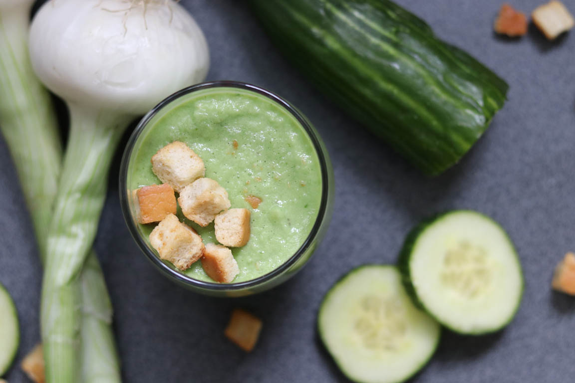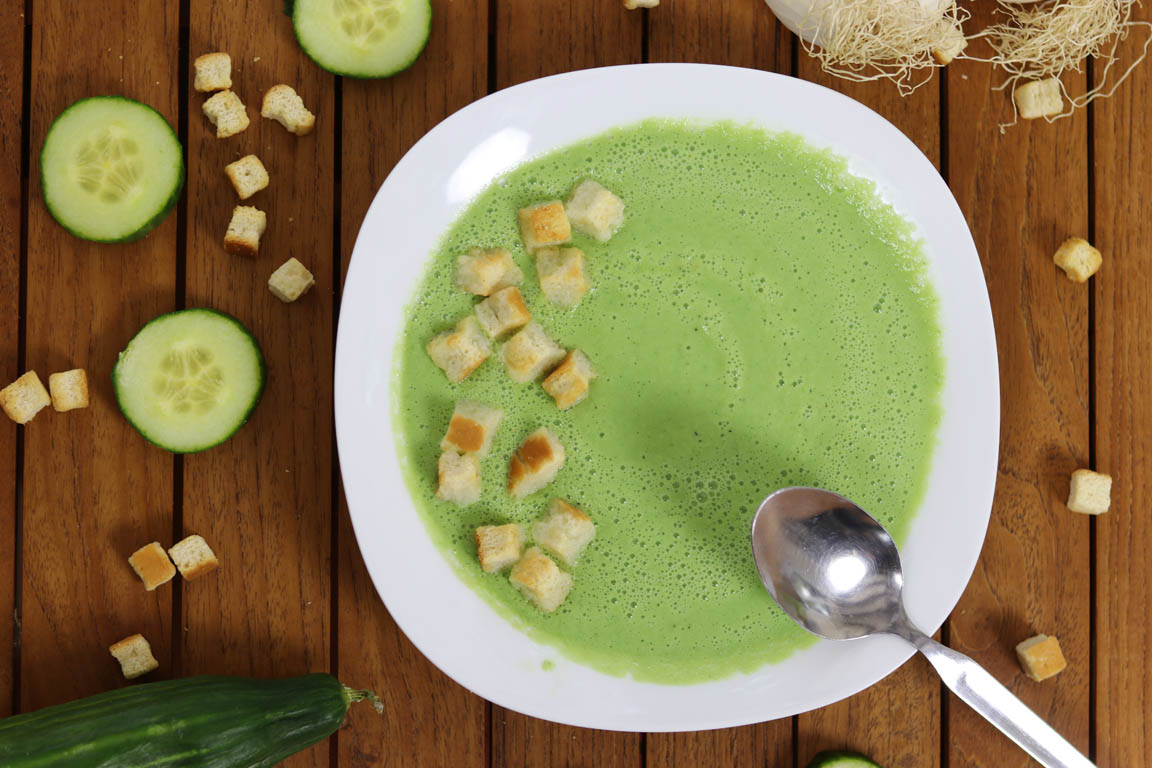 Receta muy rápida, fácil y económica de sopa de pepino y yogur para la cena o como primer plato al mediodía, con efecto digestivo y diurético.