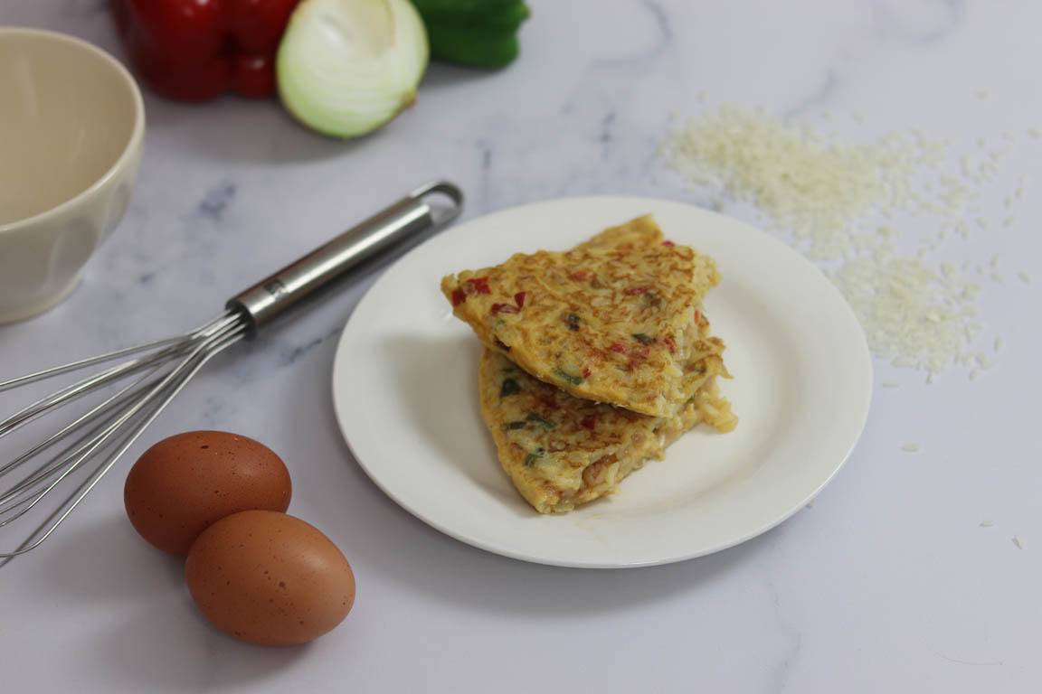 La tortilla de arroz con verduras es un plato sorprendente y muy sabroso.