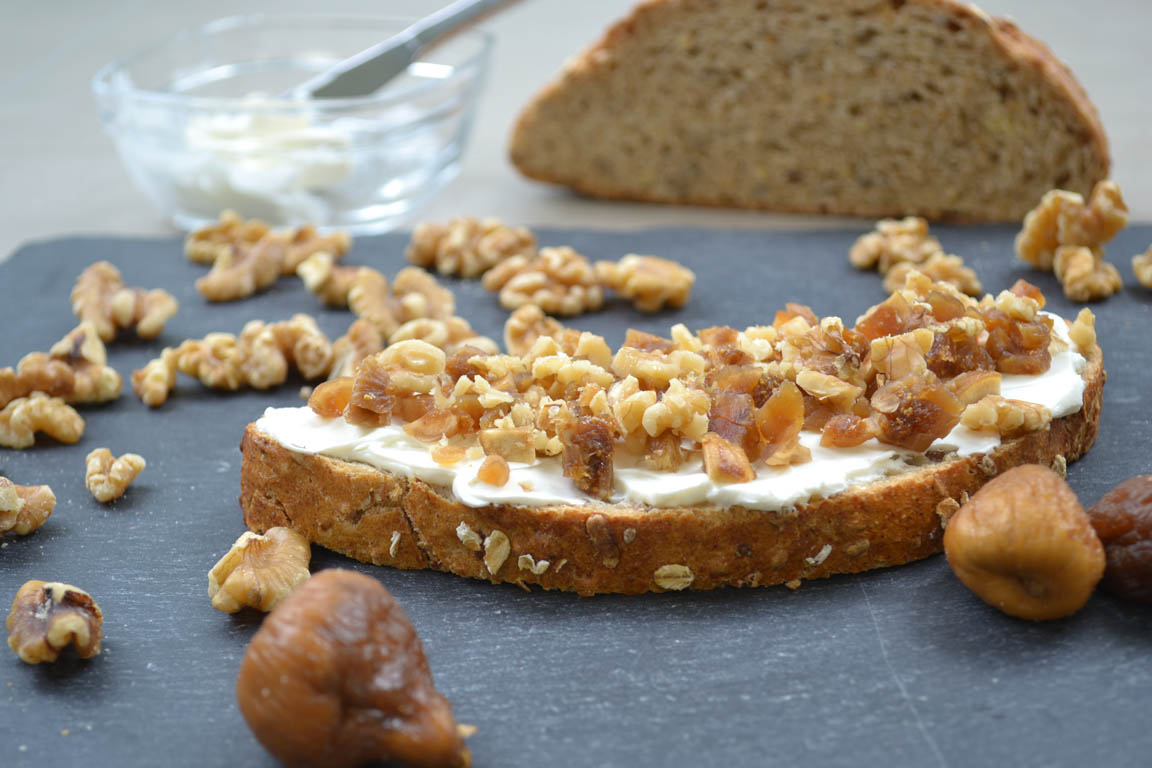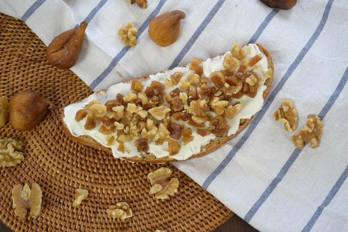 TOSTADA CON QUESO CREMA, HIGOS SECOS Y NUECES