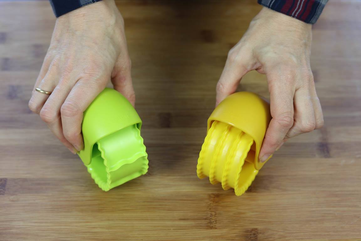 Además de para preparar como os he dicho galletitas saladas o palitos de pan, hojaldre o pizza, los rodillos cortadores se pueden utilizar para cortar la pasta fresca. Así que ya sabes, si no tienes sitio en casa para guardar la máquina cortapisa puedes utilizar estos cortadores de Silikomart para facilitar el corte tanto de tallarines como de pasta rellena estilo raviolis.